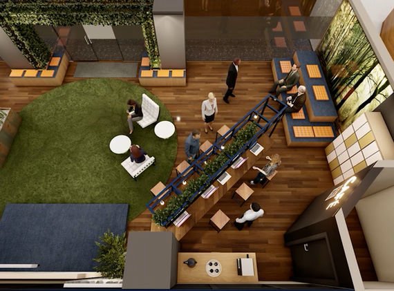 Painéis de vidro funcionam como quadros para escrita e como divisores de ambientes.